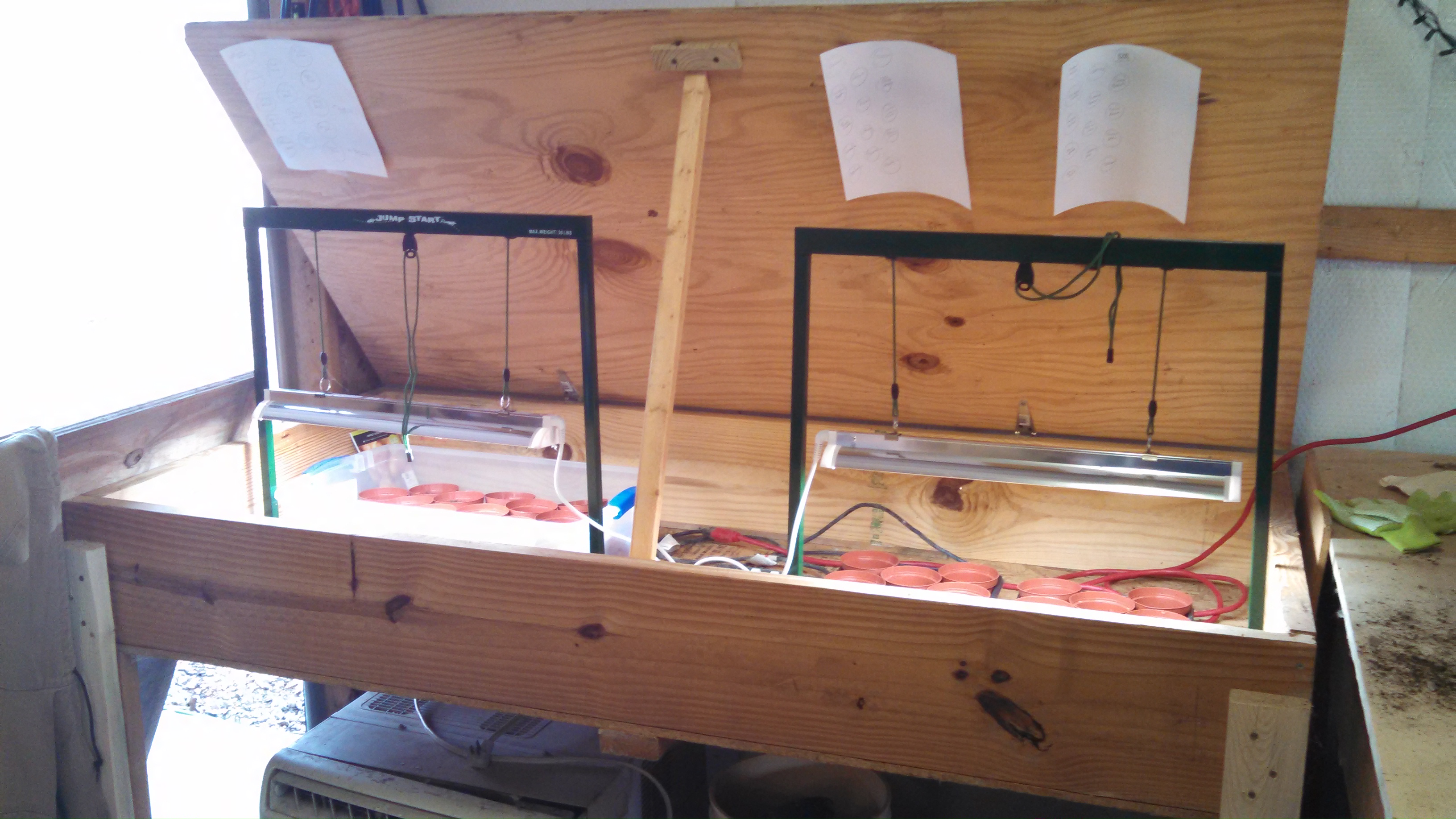 I hope to build some into the table one day, which would allow me to close the lid over the plants for the first week. For now, we hang a tarp to hold in the warmth. It seems to work pretty well.