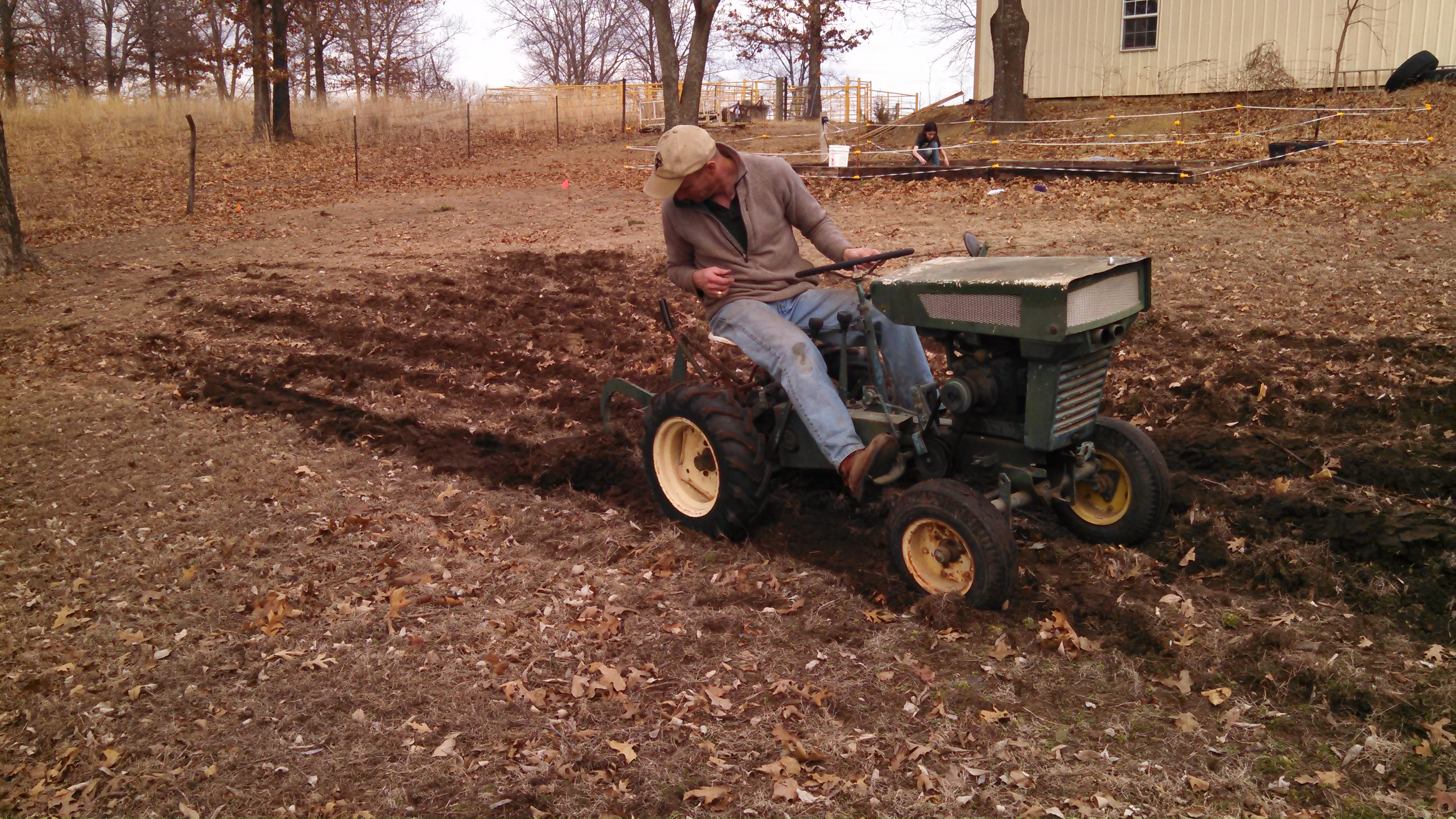 Outside, we are expanding to a second bed. This one will be twice as large as the original bed, which will allow us to harvest the garden from May until October. Our first run gave us fresh produce from May until July. The first step is to plow the ground. We would normally use the big tractor for this, but it’s currently in repair phase. So, CAT and I took turns on the Little Green Monster (a 1962 Sears Suburban 725 garden tractor) to get the ground ready.