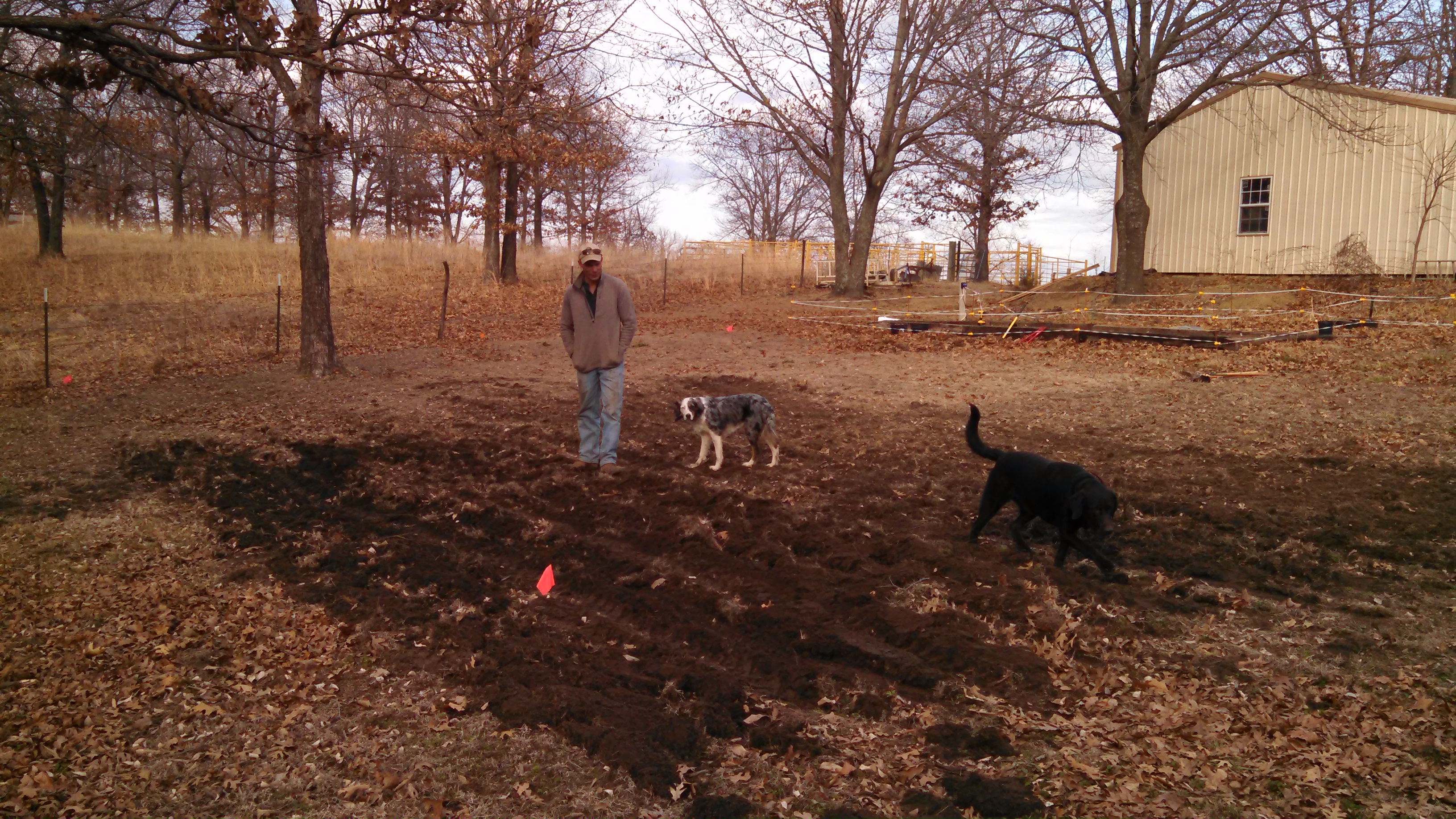 Cricket is working in the old bed to clear out the weeds that made it through the winter. CAT leveled out a couple of low spots while I finished plowing. Most of the leveling will happen after we disc the ground. Sophie and Tank helped with quality control.